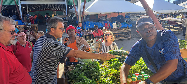I’ll start with a cooking day that was organised by one of the other cruisers. It was arranged that we would meet Val [who led the class] at the large Saturday Market in Port of Spain.