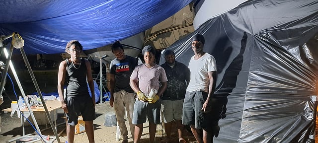 All the Coppercoat layers have to be sprayed on the same day, so a full team got to work and stayed on the job well into the late evening.