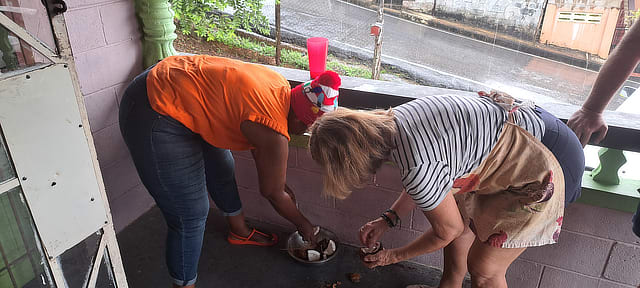 We then went to the south of the island to her house where she proceeded to demonstrate the cooking of various dishes, encouraging us to participate in several of the stages.