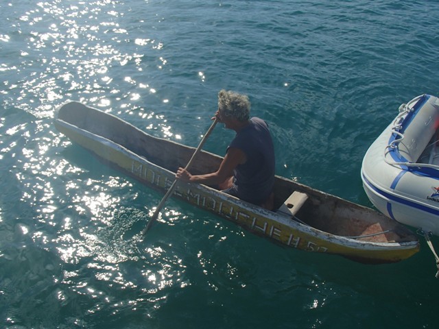 Depending on one’s mood, the regular arrival of the boys throughout the day can be a welcome thing or a nuisance but, if the latter is the case they generally get the message quite quickly. The younger boys tend to come alongside wanting to take away boat rubbish, for their dollar fee, but there is nowhere for them to take it so we built up quite a store of bin bags in our lazarette. We did notice that an area of land on the outer edge of the village is set aside for rubbish and that this is set fire to on a fairly regular basis but it doesn’t do much to get rid of plastic bottles, cartons and tin cans.