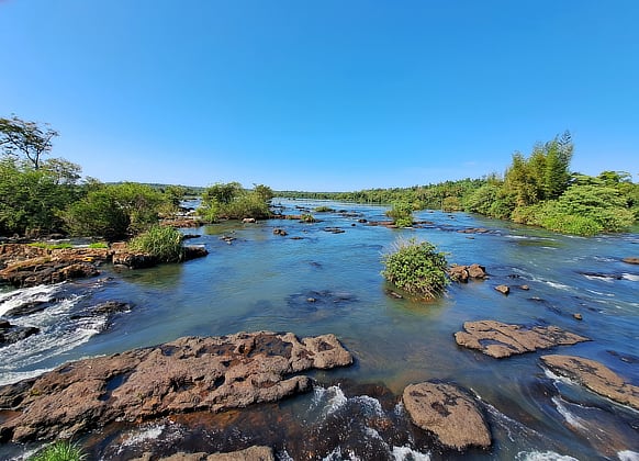 Puerto Iguazú [pronounced “I”– as in zip – almost silent “g” wa su] sits at the confluence of the Paraná and Iguazú rivers and overlooks both Brazil and Paraguay from Argentina.