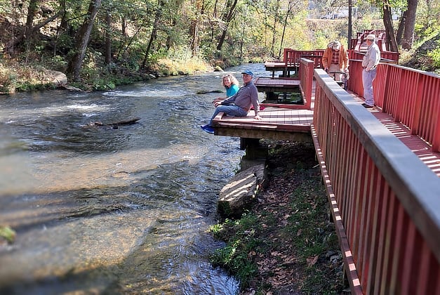 On our other day we went in the opposite direction to the Norfork National Fish Hatchery [yes, it is spelt Norfork – but pronounced like the UK Norfolk]. The cold-water hatchery has been in operation since 1871 primarily to produce trout to restock areas impacted by the construction of dams and also in reservoirs in Arkansas and the surrounding States.