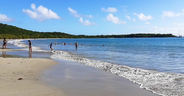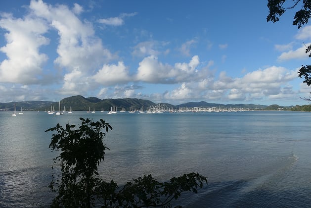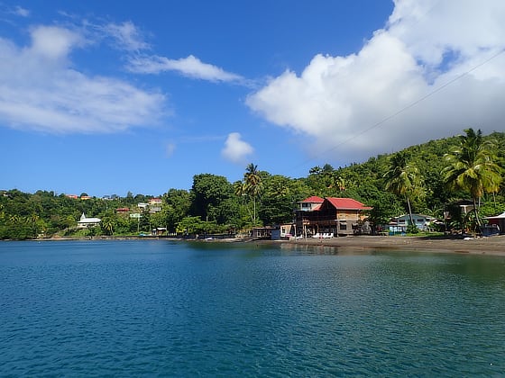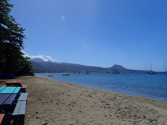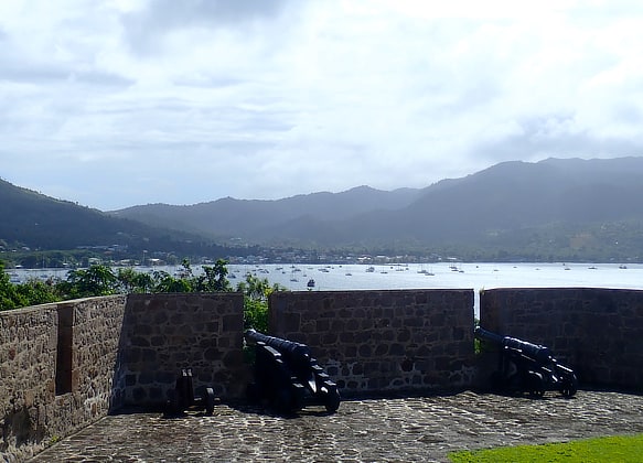 At the north end of the 2 mile long, well protected bay, lies the Cabrits National Park which overlooks the anchorage.