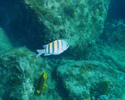 There is also a lovely reef here for snorkelling and, unlike our disappointing time in Barbados, this time we got clear water and a good range of sea life.