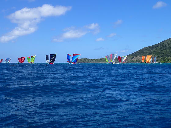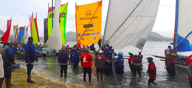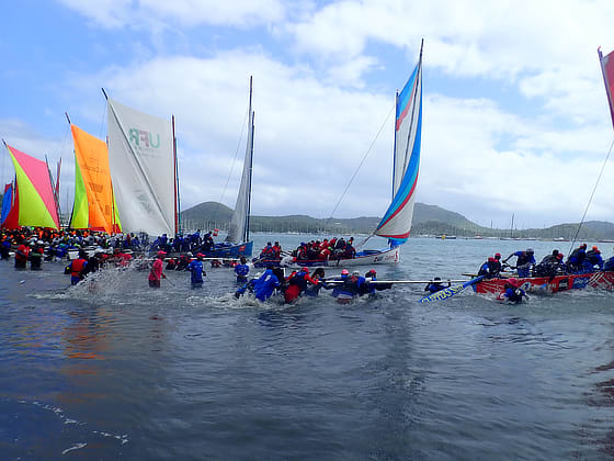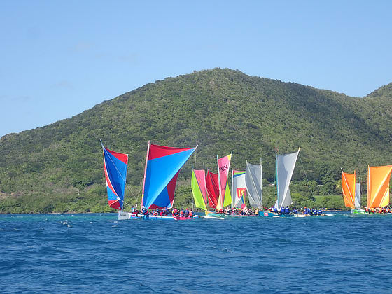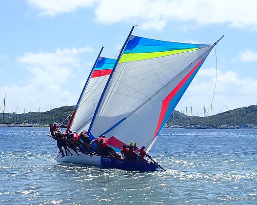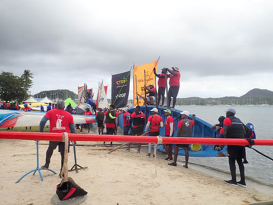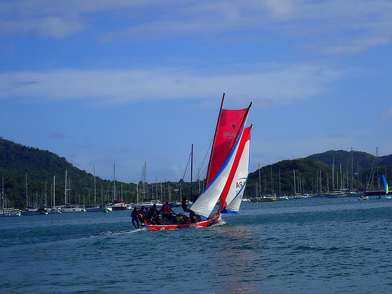 The Martinique Yole can sail with one or two sails, the first race was for the latter followed by the single sail race.