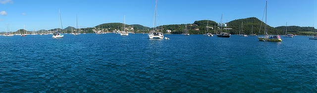 The anchorage of St. Anne lies in the SW corner of “Cul-de-sac du Marin”, another huge anchorage which is bordered by mangroves on both sides, and headed by Marin marina. Although a good 30-45 minutes by dinghy, we braced ourselves and bumped our way there several times for the large supermarkets and the chandleries. On one arrival at the “Leaderprice” dinghy dock – after a particularly lumpy ride – I said that I felt like a James Bond martini…. Definitely shaken, not stirred!