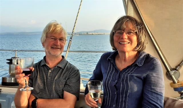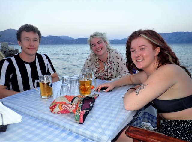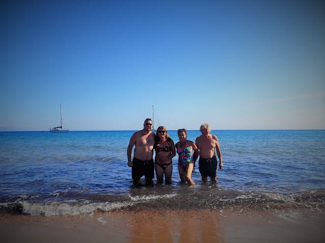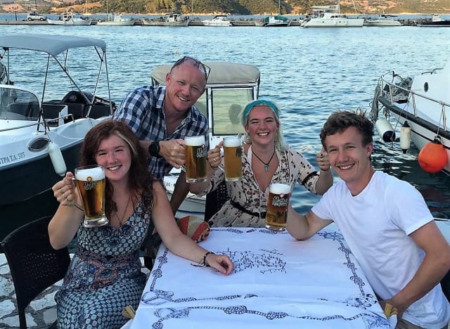 Although they opted for apartments in Ligia and in Preveza, rather than sleeping on “Owl and Pussycat” we were able to meet in the evenings between their quiet beach or pool days and our sailing.