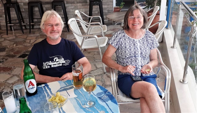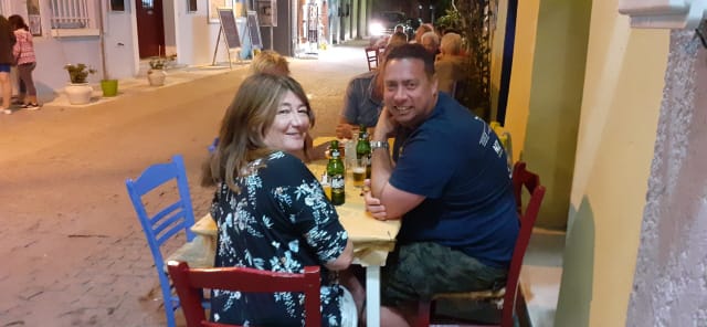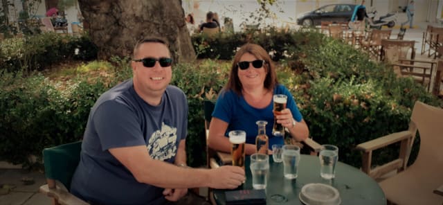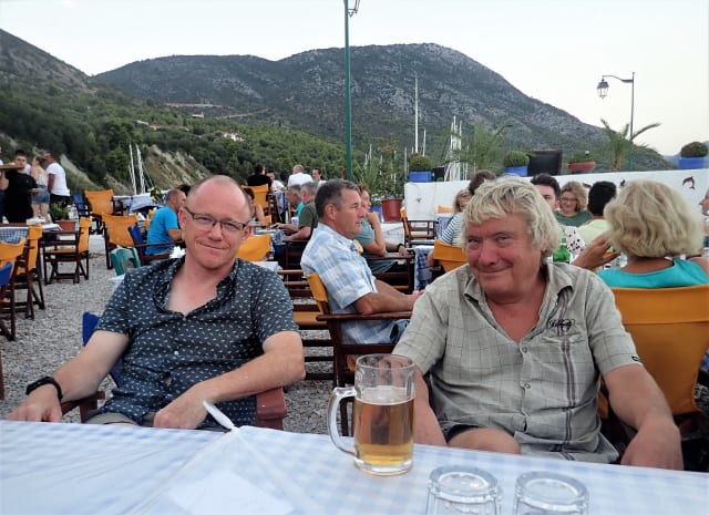 Chris and John flew in to Kalamata so it was another car hire to collect them and then, once back in Pylos, we all settled into the town square to celebrate their arrival.
