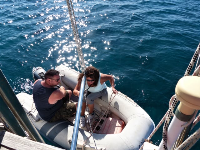 Being seasoned visitors, Chris and John happily – I think! – took the dinghy to shore…