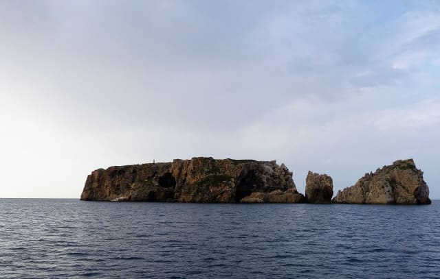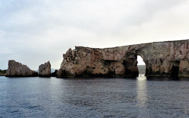 It was then time to start making our way back to Kalamata, stopping at all the anchorages we had been to in June. But first, on leaving Pylos Chris wanted a closer look at the “Azure Window”. Unfortunately it was cloudy when we left so we didn’t really get the “azure” bit but we did see the window.