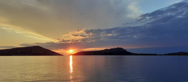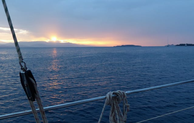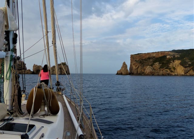 It was now nearly time for our fourth guests – Chris and John – who were due six days later, 135nm away. The weather wasn’t good for leaving immediately and we knew that, if necessary, we could do the journey in one sail with an overnighter. However, our preference was for day sails and, luckily, the weather settled sufficiently to allow three separate sails of 30nm, 53nm and 52nmstopping at two anchorages we had been to before.