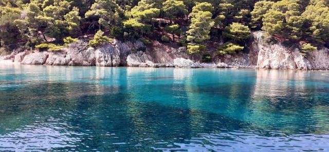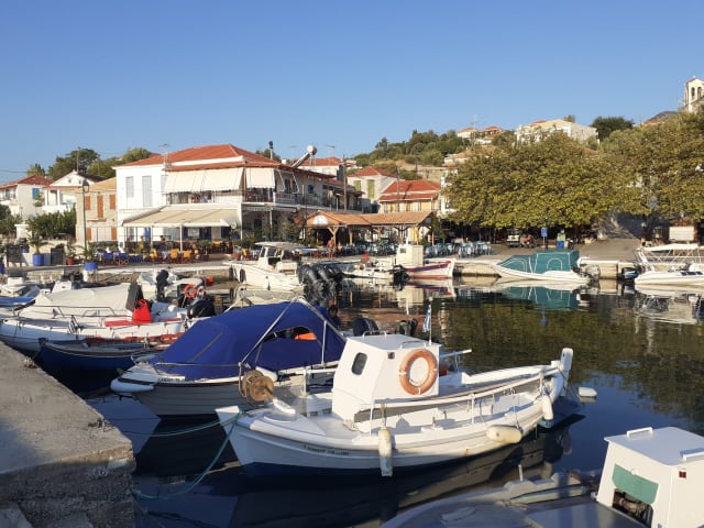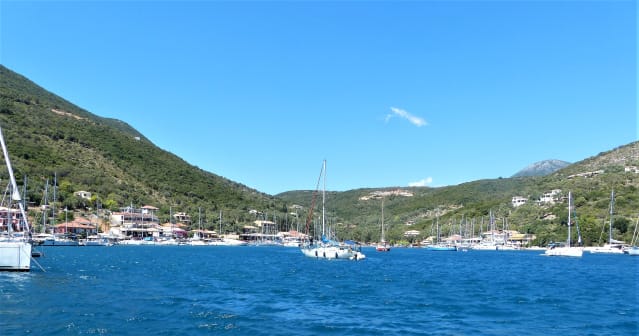 …..and also spent a night in Port Atheni on Meganisi – another beautiful anchorage….