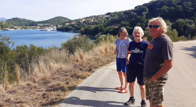 On the Saturday morning, as planned, Mike took Dave and Mag and their suitcases up to Nidri to catch the ferry. About an hour after he returned they called us to say that the ferry wasn’t running and that they were going to get a room. That seemed rather unnecessary so Mike went and brought them back for another night on “O+P”. It was fingers crossed the following day because we knew it was their last chance to get to Kefalonia without a long and probably uncomfortable passage with us to a harbour that might not be tenable due to the aforementioned destruction. Fortunately the ferry ran and all was well.